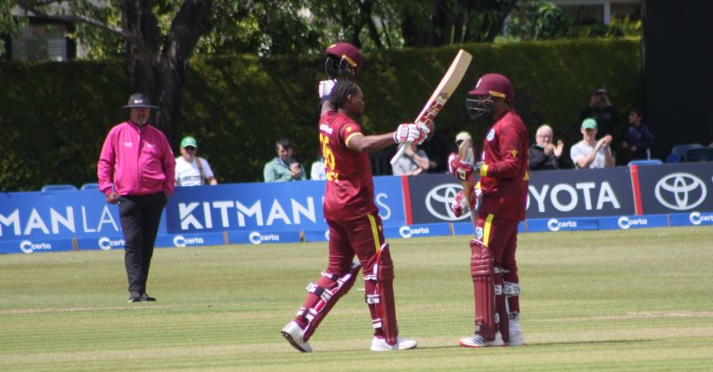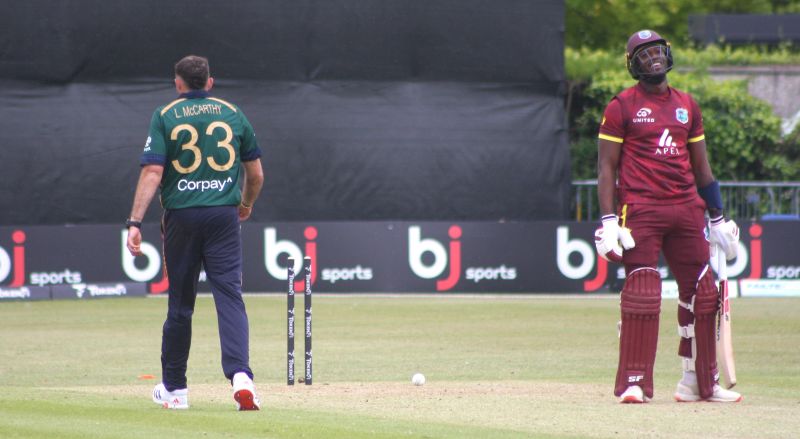 West Indies 256-5 (20 overs; E Lewis 91, S Hope 51, K Carty 49*; M Humphreys 2-16, B White 1-50, M Adair 1-52, B McCarthy 1-55, L McCarthy 0-81)