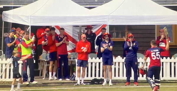 The Jersey Boys keeping the once mighty Kenya under strict control in the opening overs, captain Charles Perchard with the breakthrough in his first over. A real struggle for Kenya, off-spinner Josh Lawrenson removing the middle order and Nick Greenwood picking up the rest. Jersey lose a wicket in the first over of the chase, a loose waft outside off sees Greenwood drag his first delivery back onto the stumps and Lawrenson follows also without scoring and Carlyon survives a simple drop at extra cover, a nervy start from the hosts! And no third life for Carlyon as he chips tamely to mid on - three for Nelson Odhiambo. A half century partnership between Zac Tribe and Jonty Jenner steadied the ship and they made it a century with the winning run.