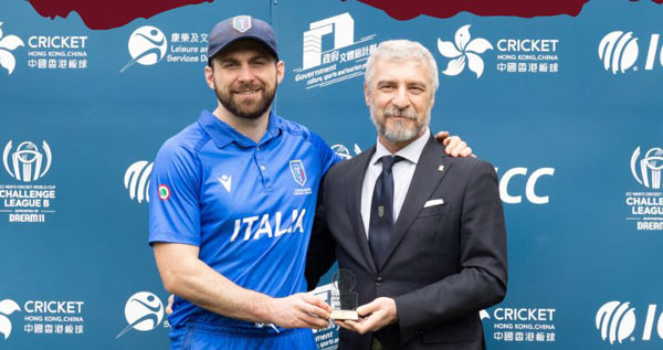 Italy's Marcus Campopiano POTM for his 54 runs (Cricket Hong Kong)