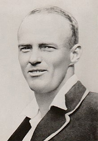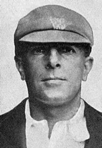 At No 3 comes the imperious CHARLIE MACARTNEY, known as the Governor General, because of his lordly and imperious manner at the crease. With a Co Antrim ancestry, he was a right hand bat who had every stroke in the book and many more besides. Invariably batting at first drop or opening, his favourite ploy was to hit he first ball he received straight back at the bowler's head. "It unsettles them, " he would explain to his startled partners who had had to take evasive action themselves. His batting has been described as "Brilliantly unorthodox but profoundly safe." Charlie was also a very good slow left armer, a Test class spinner, whose bowling was once seen as his stronger suit. He toured England 4 times, scoring 335 before tea against