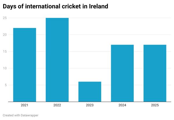 In 2021, before the funding rise, there were 22 days of senior international cricket in Ireland. 2022 brought 25 days. 2023 was a dark year with just six days, though ICC events and fixtures in England at least preserved some semblance of a schedule. Last year, when the new money arrived, there was 17. 11 days of Emerging Ireland cricket last year make 2024 look busier than this summer, which has the same total number of senior internationals, only without the junior games (so far, at least; more fixtures of some kind have been promised).
