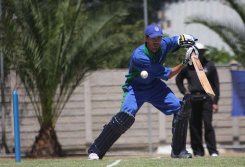 Namibia v Oman: Namibia's Gerrie Snyman hits a defensive shot