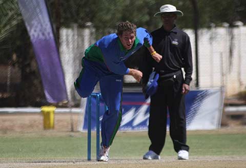 Namibia v Uganda: Namibian pace bowler Louis Klazinga