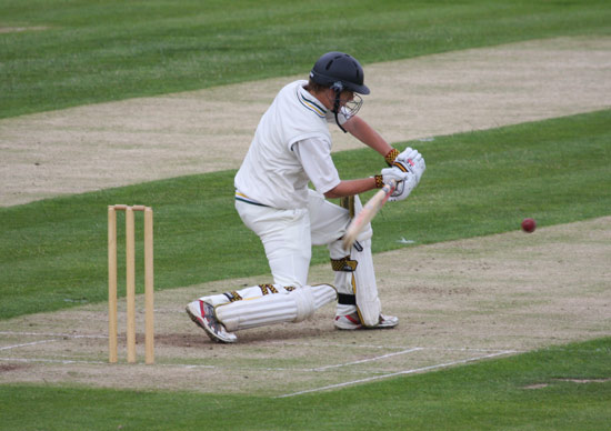 The ball drops just over the stumps