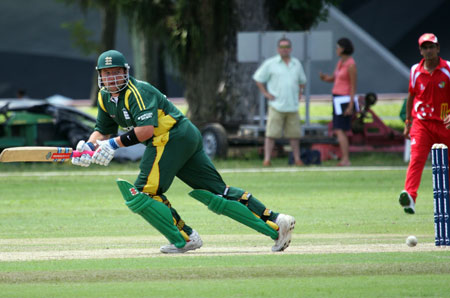 Lee Savident dispatches the ball to the boundary