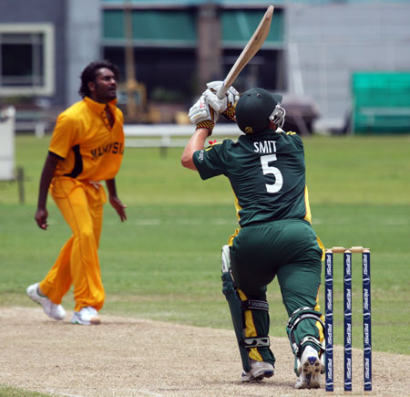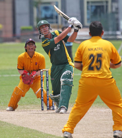 Player of the tournament Jeremy Frith raises his bat for his hundred
