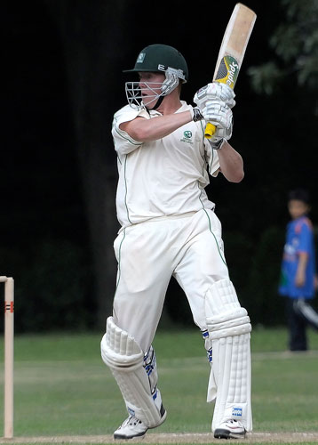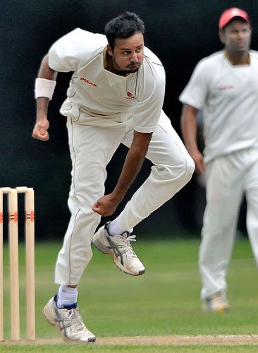 Andre Botha sets himself as Hamza Tariq and Ruvindu Gunasekera look on
