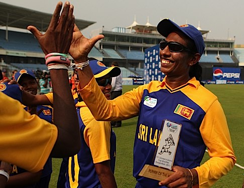 Yashoda Mendis departs to the delight of Laura Brouwers