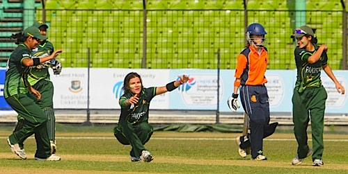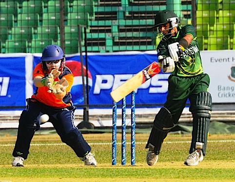 Bismah Maroof hits out as Miranda Veringmeier looks on