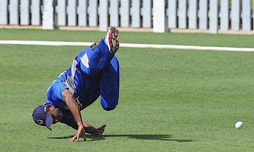 Umpires Buddhi Pradhan and Sudhir Asnani
