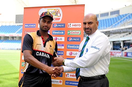 Rizwan Cheema and Bermuda's Captain David Hemp at the toss