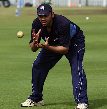 Jan Stander and Majid Haq come off the field after Scotland made 166