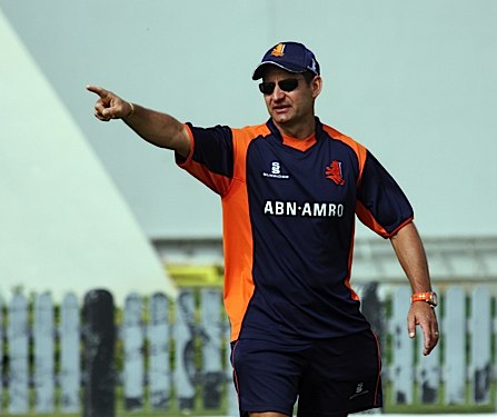 Netherlands coach Peter Drinnen congratulates Michael Swart