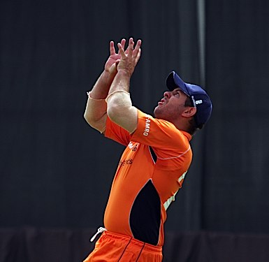 Wesley Barresi unable to gather the return as Jan Stander scrambles home