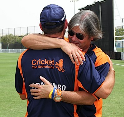 Dutch Manager Ed van Nierop hugs Peter Drinnen