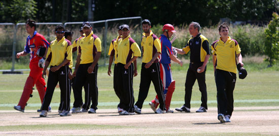 Shafiq digs out a yorker as Bodenstein takes a tumble