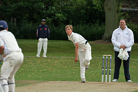 Shujaa Khan and Thomas Dryden appeal for an lbw