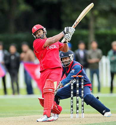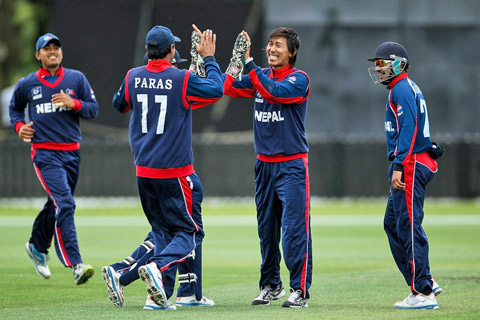 Khurran Chohan shouts out his joy after dismissing Gyandra Malla