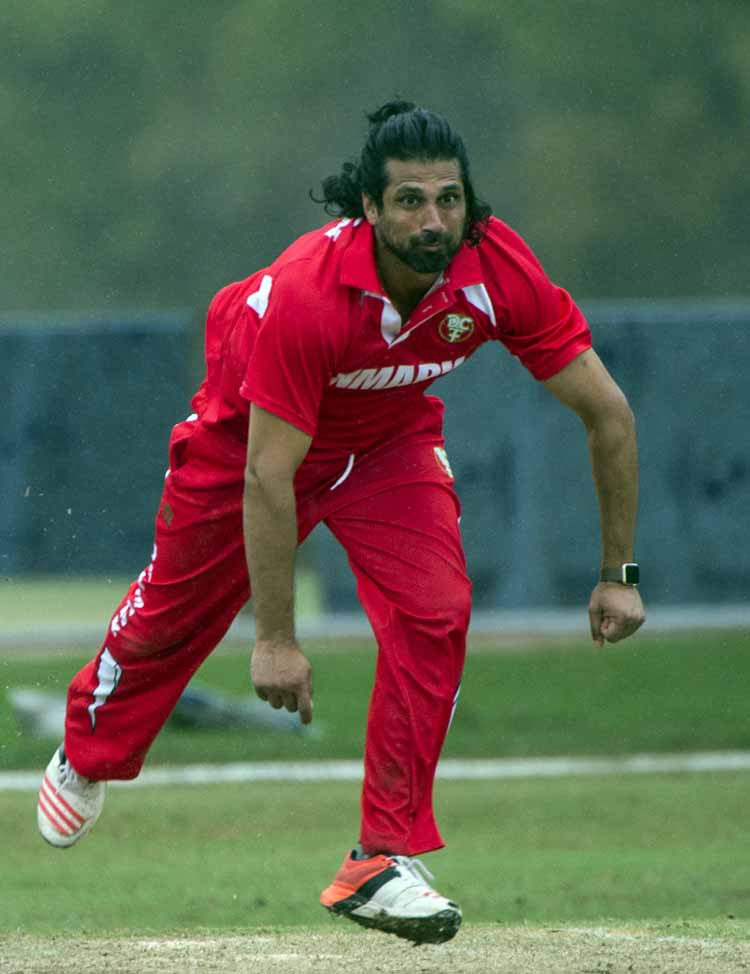 Umpires Gregory Brathwaite and Uli Kapa take the field.
