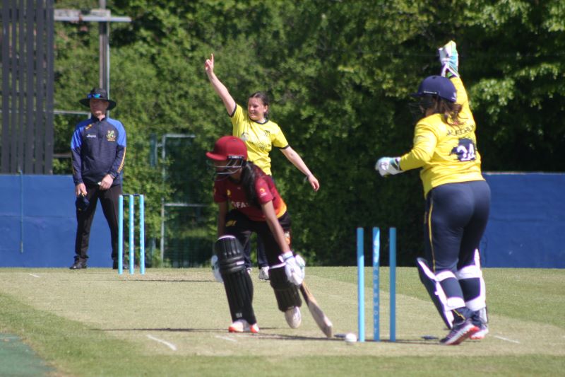 Mansi Bhavsar is stumped by Hannah McLaughlin