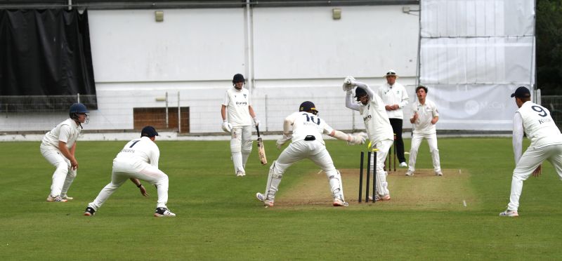 Attempted stumping by Sam Topping