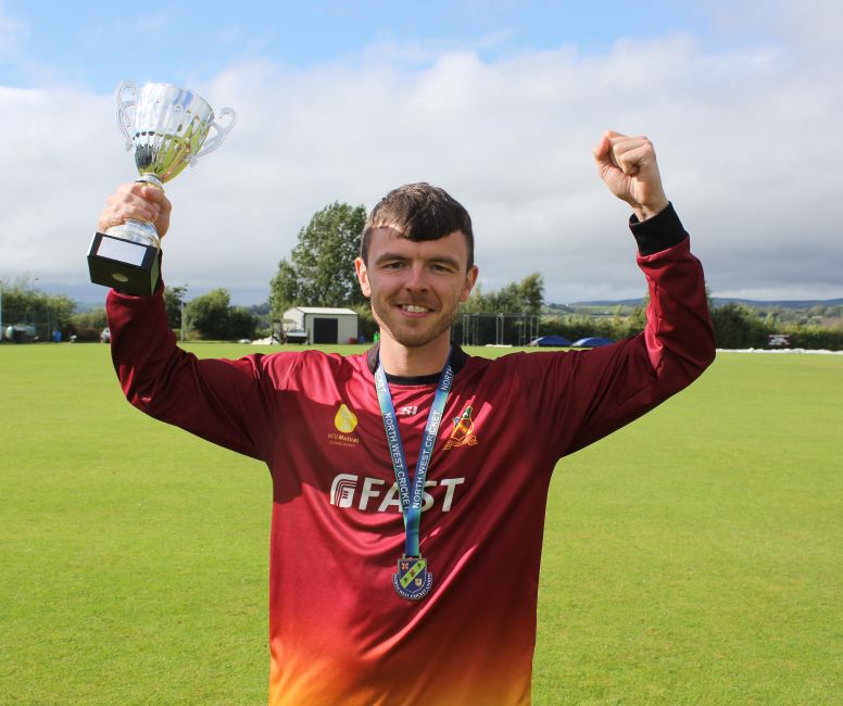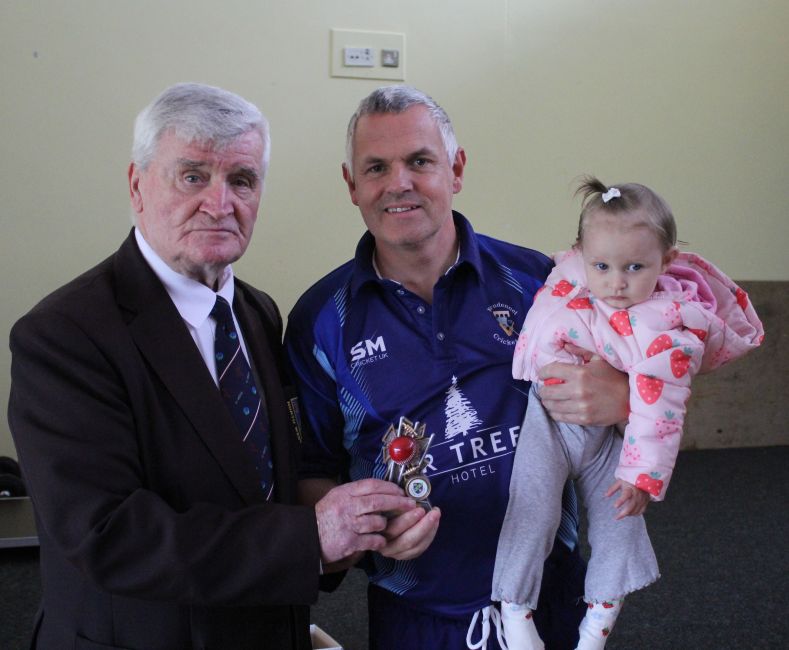 Man of the Match Mark Roulston gets his award from Connie McAllister