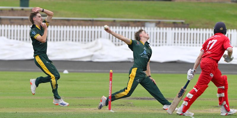 Adam Leckey bowling against St George's