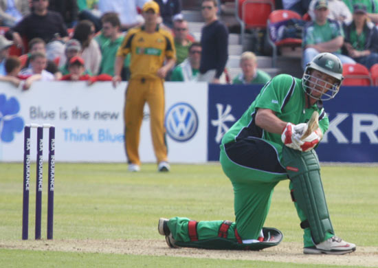 The Australia bowlers were rattled and the captain, the great Ricky Ponting, was not exactly panicking but was certainly beginning to wonder just how he would get a breakthrough. In the end, inevitably, it was a batsman's error rather than a demon delivery which ended the partnership, Stirling, after a run-ball 36 playing all round a ball from Ryan Harris. The crowd hoped it would be but a hiccup to an Ireland success but when Gary Wilson, promoted to No 3, and, crucially, the captain, followed in the space of three overs, the Aussies were back in control.
