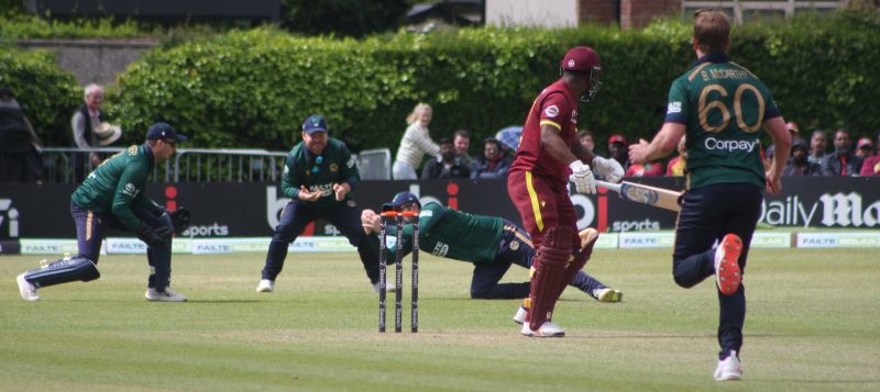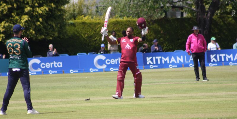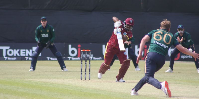 West Indies 256-5 (20 overs; E Lewis 91, S Hope 51, K Carty 49*; M Humphreys 2-16, B White 1-50, M Adair 1-52, B McCarthy 1-55, L McCarthy 0-81)