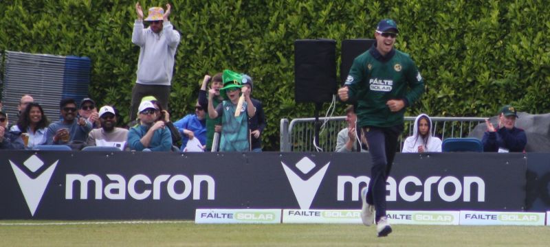 Curtis Campher celebrates catching Jos Buttler (Sportsfile)2nd T20I: Ireland v England - match abandoned.