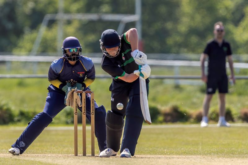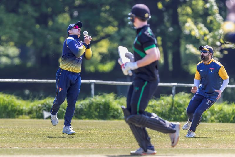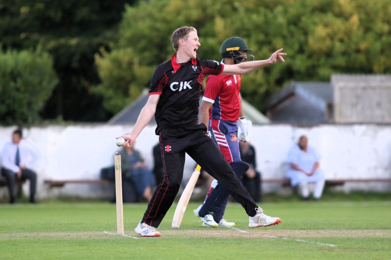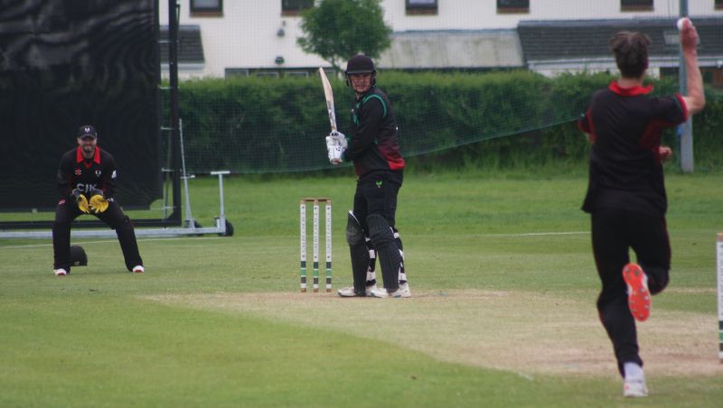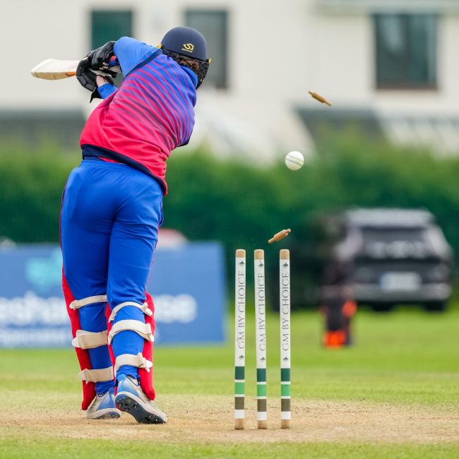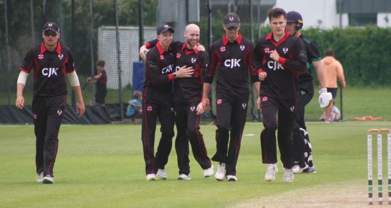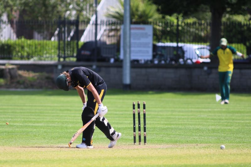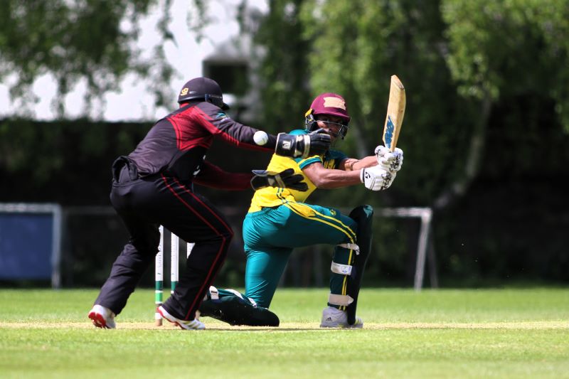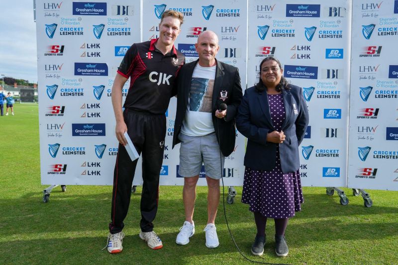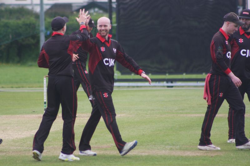 Connor Blaxall-Hill and John Anderson basked in the sunshine with after match pints amid the horsebox traffic of the Dublin Horse Show, reflecting on a job well done as they made light of a 236 target at nearby Park Avenue. Railway Union's Phillipe Le Roux top-scored with 62 from 57 balls (5 fours, 2 sixes), while there were three wickets for Melvin Deveraj. The chase looked in trouble as Muhammad Sinan's early wickets had them at 27 for 3, but that was the end of their success. CBH hit 10 fours and 6 sixes in a better than even time unbeaten 131, adding an unbroken 215 with John Anderson 59* (6 fours) that sealed the seven-wicket win.