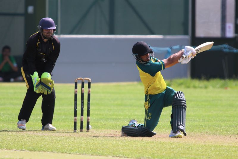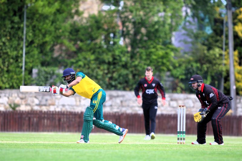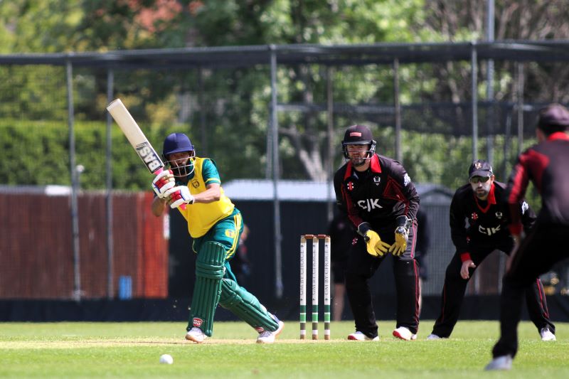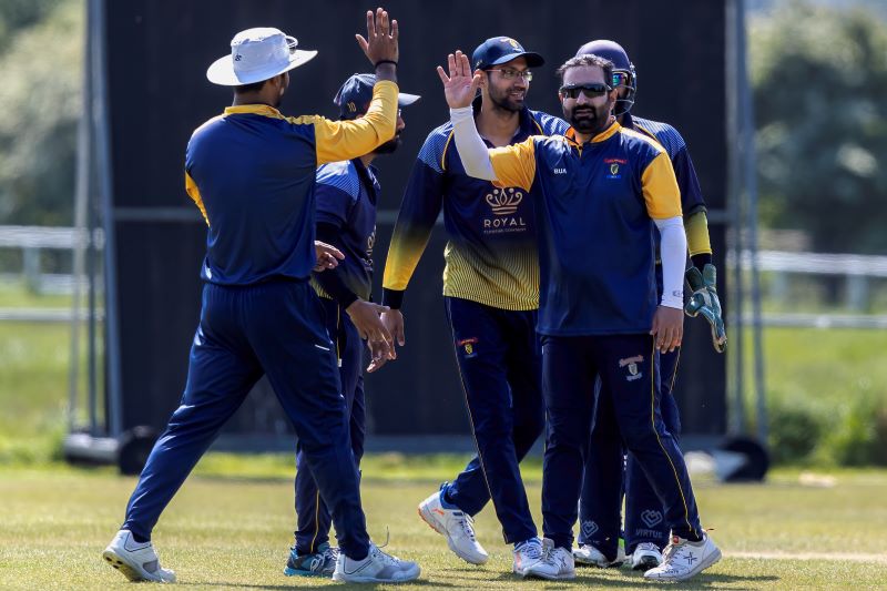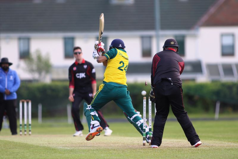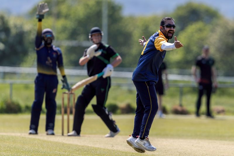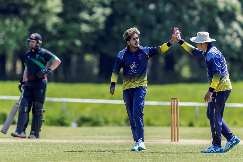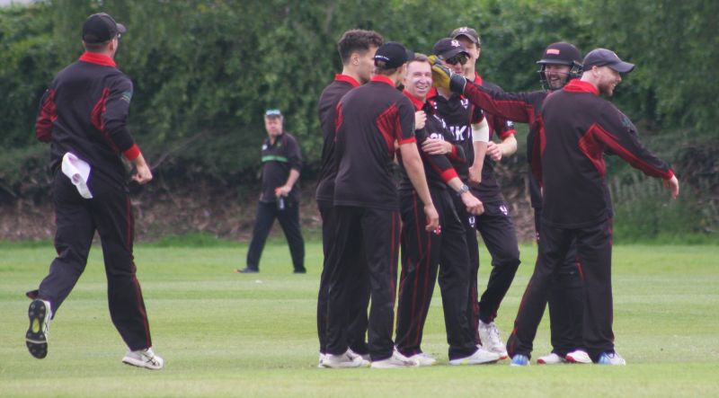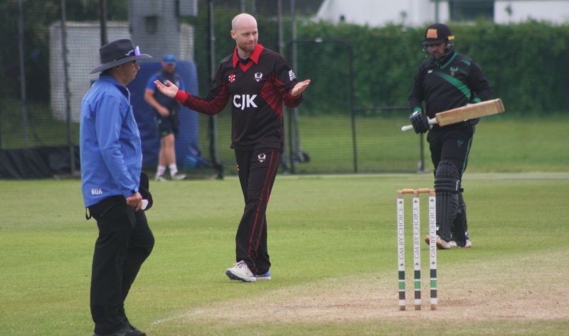 Connor Blaxall-Hill and John Anderson basked in the sunshine with after match pints amid the horsebox traffic of the Dublin Horse Show, reflecting on a job well done as they made light of a 236 target at nearby Park Avenue. Railway Union's Phillipe Le Roux top-scored with 62 from 57 balls (5 fours, 2 sixes), while there were three wickets for Melvin Deveraj. The chase looked in trouble as Muhammad Sinan's early wickets had them at 27 for 3, but that was the end of their success. CBH hit 10 fours and 6 sixes in a better than even time unbeaten 131, adding an unbroken 215 with John Anderson 59* (6 fours) that sealed the seven-wicket win.