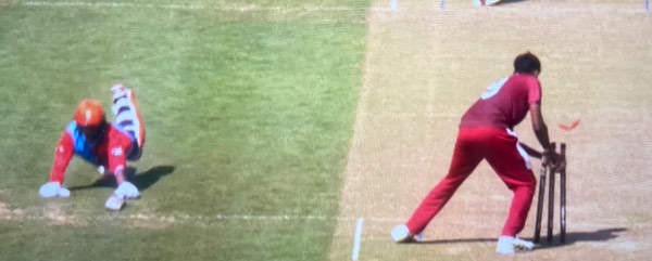 Good call by the umpire sees Mohammad Amin run out first ball (ICC.tv)