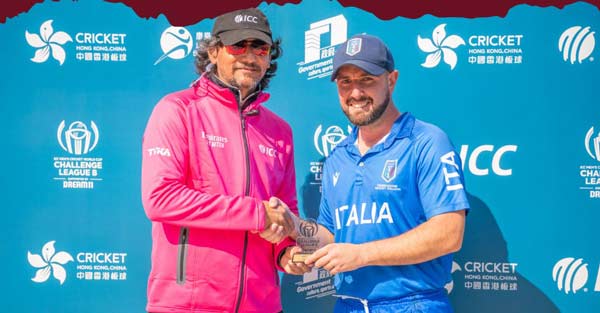 Italy's Marcus Campopiano POTM for his 54 runs (Cricket Hong Kong)