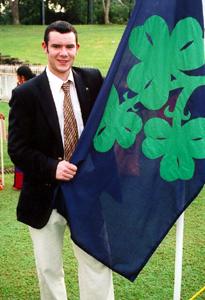 Ireland captain, Peter Shields, displays the Irish Cricket Union flag prior to the Opening Ceremony.