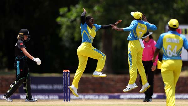 That they did, thanks to Gisele (27 from 28 balls, three boundaries) who played more freely than Henriette (30 from 46 balls, four boundaries). Belise Murekatete swiped a four and a six to make 14 from 12 balls, but the Kiwis kept the rate under control.