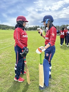 Norway batters in conversation (Norges Cricketforbund)