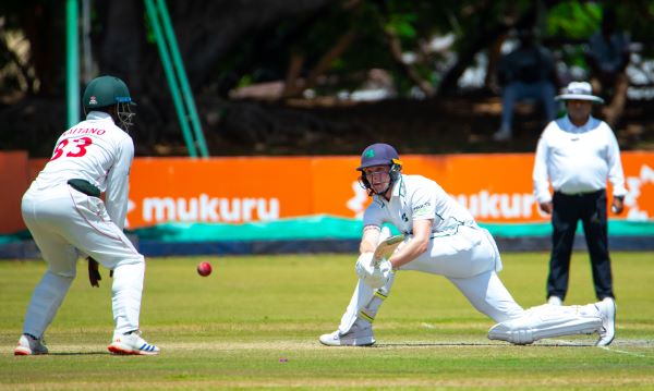However, Zimbabwe came back strongly after the break. Harry Tector was trapped leg before by Johnathan Campbell for 17, giving the bowler his maiden Test wicket.