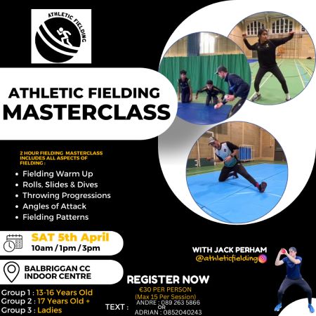 The centre will also play host to 3x fielding masterclasses with @athleticfielding (Athletic Fielding) on the 5th of April and would love to see you there.