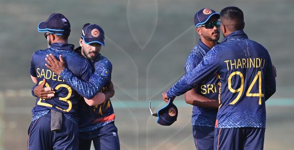 The Sri Lanka innings was dominated by Sahan Arachchige who came in at 76 for three at the start of the 15th over and was not dismissed until the penultimate over, when he holed out to long long-on. He made 78, with just five boundaries, but was the vital backbone after the fall of wickets in the first half of the innings.