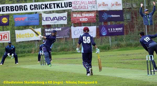 This weekend saw the start of matches in the Elitedivision regular season. In Skanderborg, KB was visiting, where KB won the toss and took the field. The match started on time, but the weather was not like the previous days. It was grey and cold (11°), and there was an expectation of later precipitation, whereby the umpires had reduced the match to 2 x 40 overs. Skanderborg was hit by a number of cancellations and had to get Andy Lambert back in after a long break. Skanderborg also had a debut for Zishan Shah, who was previously in Svanholm. It was not a dream debut for him, as he was caught leg for leg on the first ball! It was probably the third time that Zishan had started a season with a round of zero. On the other hand, Nikolaj Damgaard (94) was in a good mood and KB quickly found out that he should not be given a card, as the ball ended up in the football field next door. Asad Shah's first over cost exactly 20 points. Together with Shangeev Thani (66), the score climbed to 153 in the 20th over before Nikolaj edged to the keeper and missed a century. The rain came in between and there were 3 rain breaks during Skanderborg's half, but that did not stop Skanderborg from reaching 269 in the 40 overs. Shangeev continued his play until he was caught on the boundary for 66 while Andy Lambert (41) held one end without taking any big risks except for the last ball. Rizwan Mahmood (10) and Omar Hayat (17) did the same. Saad Ahmad was KB's best bowler with 3 for 35 in his 8 overs. The last overs were played in light rain, which continued and got worse. This prevented KB from getting to the wicket and as the rain continued KB could not get their 20 overs. The match therefore ended as “No result”.