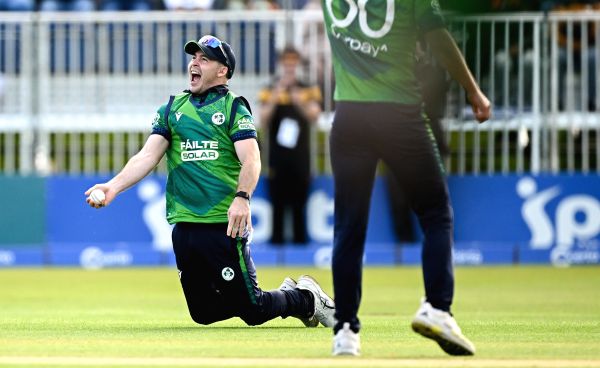 Jos Buttler threw his hands at Barry McCarthy’s second delivery, but his powerful drive somehow ended in the hands of Curtis Campher at cover. The Munster Reds all-rounder is a man who makes things happen and old men were heard to say how they had never seen a better catch than Campher’s full-length dive to cling onto a tracer bullet one-handed, an inch above the turf.