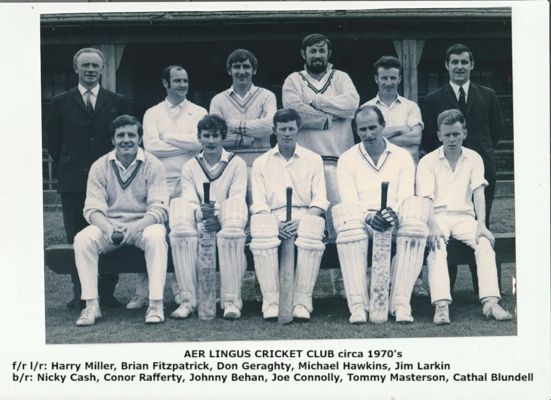 Joe worked in Aer Lingus and with a group of others in the national airline decided to enter a cricket team into the Dublin Business Houses League in the 1970’s. Previously Aer Lingus fielded a side for a brief period in the 1950’s where they played on a pitch that is now Our Lady Queen of Heaven Church located behind Terminal 1 Car Park.