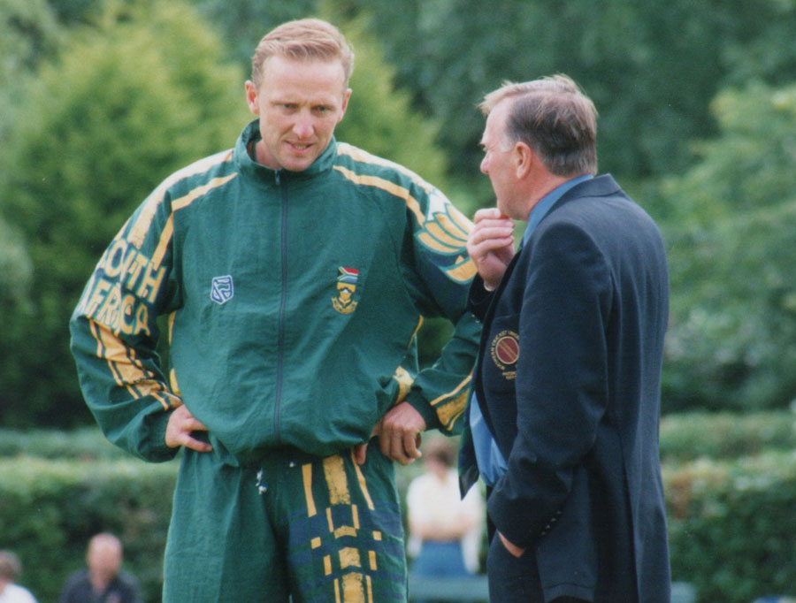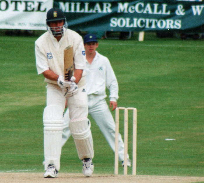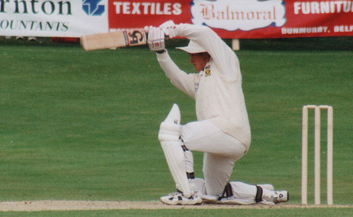 - Brian McMillan of South Africa batting against Gordon Cooke