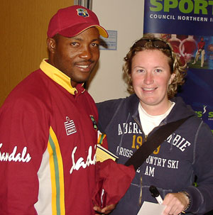 - Irish ladies player Ciara Metcalfe pictured with Brian Lara