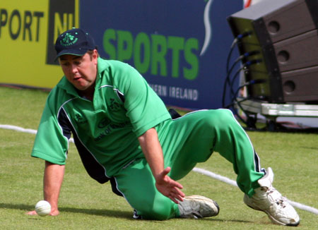 - Trent Johnston bowling. Ed Joyce is the non striker