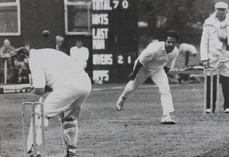 - Nigel McElwee is bowled as Paul McNamee looks on