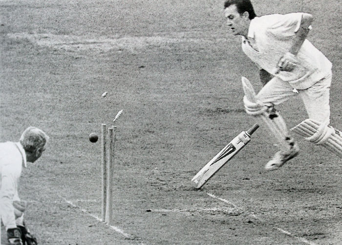 - Andy Patterson does a jog after Gordon Cooke is dismissed