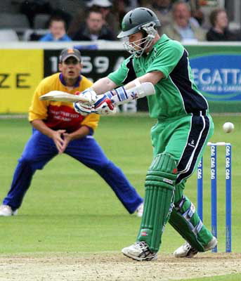 When the toss was made the sun had come out but it was chilly. The pitch was hard, beige coloured, but with a touch of green. Ireland would have fielded first had they won the toss. The outfield was damp and slow on a big ground.