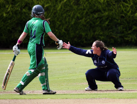 Earlier in the day Scotland had battled against a tight and impressive Irish bowling display, making 85 from 47.5 overs. They had looked destined to post a total well in excess of 100, but the dismissal of their talismanic skipper Kari Anderson for 29 with the total on 62 for 4, heralded a dramatic collapse.